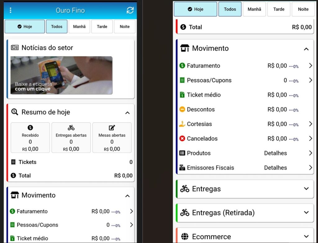 Hoje seria interessante termos mais informação dentro do DashBoard como vendas canceladas, e informações do caixa, segue um imagem de um concorrente nosso que traz mais informações e poderíamos nos inspirar nisso