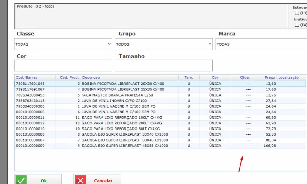 Consulta de estoque no PDV OFFLINE